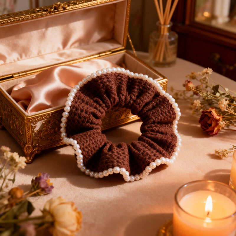 ホットセール アクセサリー デザイナー 卸売 オーガニック 綿 スクランチ ホワイト パール ヘア スクランチ 女性 女の子