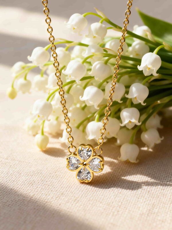 変色の心配なく、時代を超越したエレガンスを。私たちの四つ葉のクローバーハートネックレスは、スタイルと実質の両方を求める現代女性のためにデザインされました。四つの繊細なハート型のクリスタルが幸運のクローバーのシルエットにセットされており、カジュアルなラウンジウェアからイブニングドレスまで、どんな服装にも輝きを添えます。